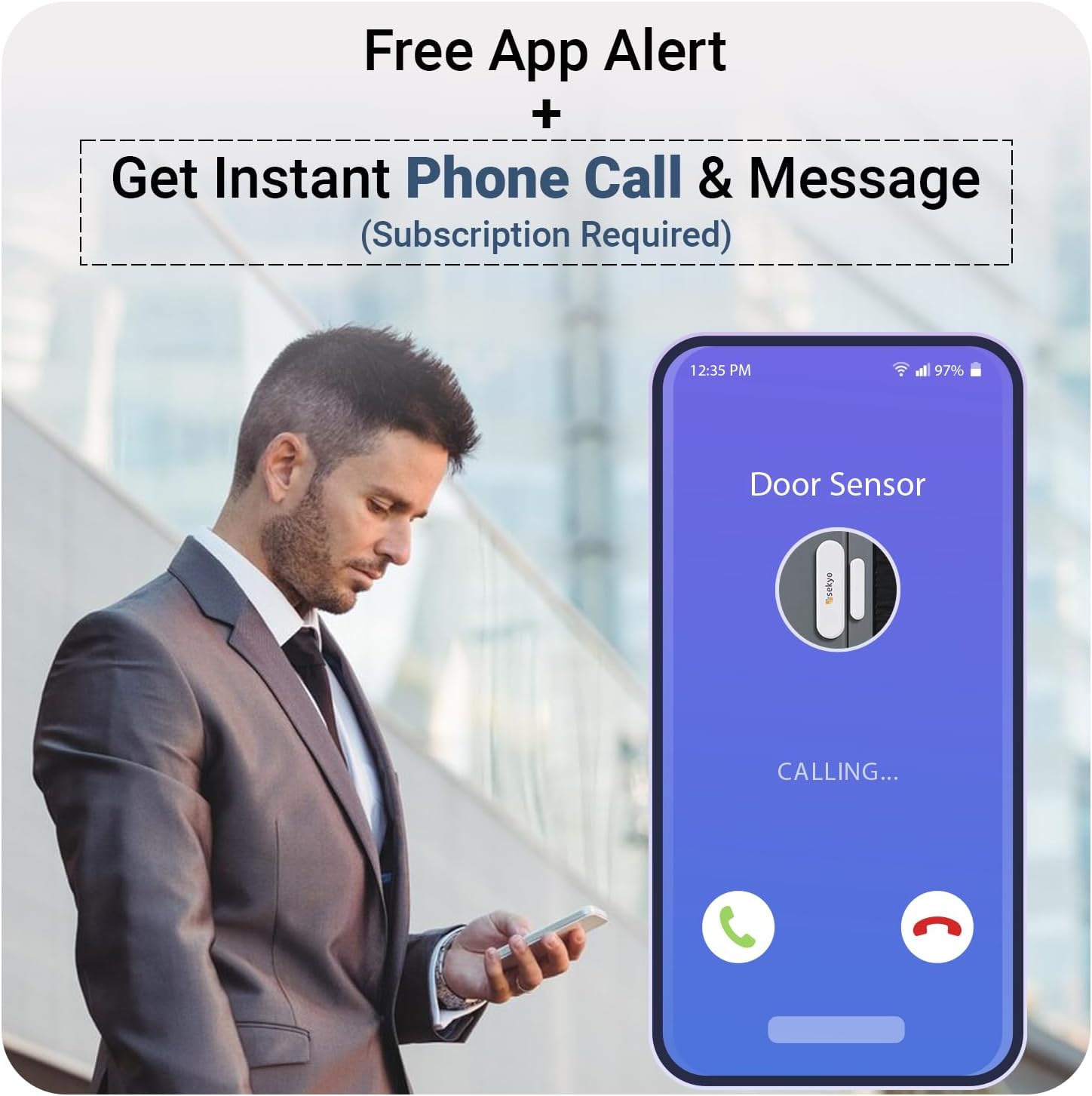 【Door Sensor that Alerts Your Phone】: When door/window/garage is opened or closed, the smart door sensor will push instant alarm notification to your smartphone. You can also schedule timing for alarm enable/disable.. ie from 10:00pm to 6:00am etc. (No Siren Sound, Only Phone Notification) (To get instant phone call & messages – Subscription required)