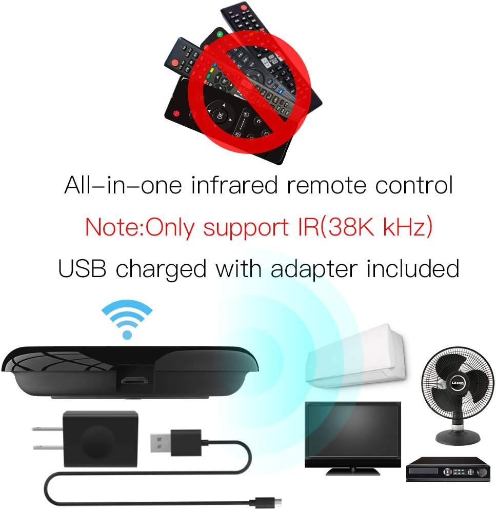 1.All-in-one infrared remote control hub activates air conditioners, TVs, fans, media players, set top boxes, and more; only supports IR (38K kHz); RF not included