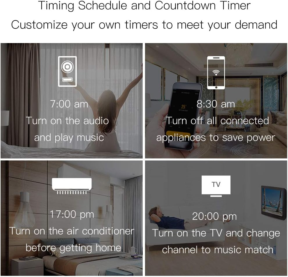 3.Use hands-free voice control with Amazon Echo or Google Home to change A/C temperature, turn on fans, change TV channel, play DVDs, turn on your set top box, etc; to see compatible brands and devices, check the Smart Life app
