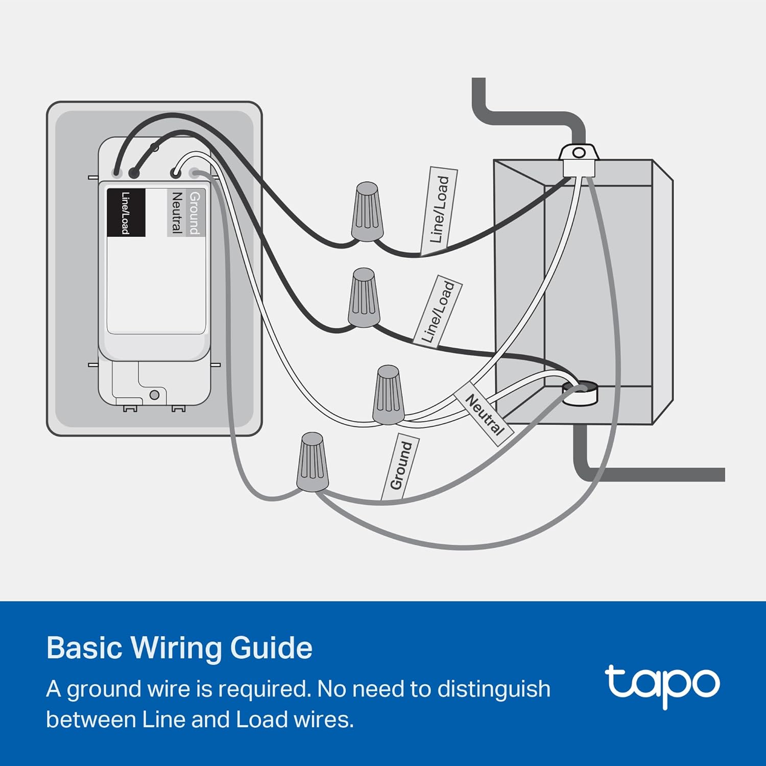 【App-Guided Install】The Tapo app guides you through step-by-step setup. Requires neutral wiring and 2.4 GHz Wi-Fi. Consulting an electrician is recommended if you’re unfamiliar with electrical wiring.