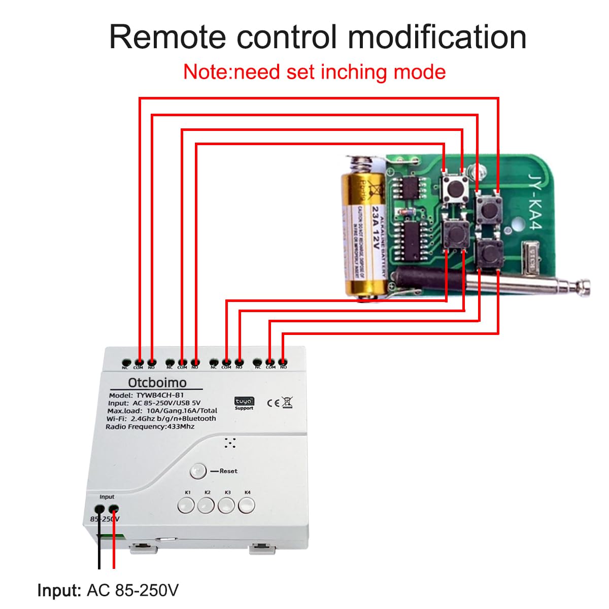You can control the connectted home appliance in Tuya or smart life APP anywhere and anytime.Such as light, electric kettle, electric rice cooker, electric curtain, etc. RF433 Control The WIFI Module support RF433 Frequency,and you can control the WIFI module by RF433mhz remote controller.