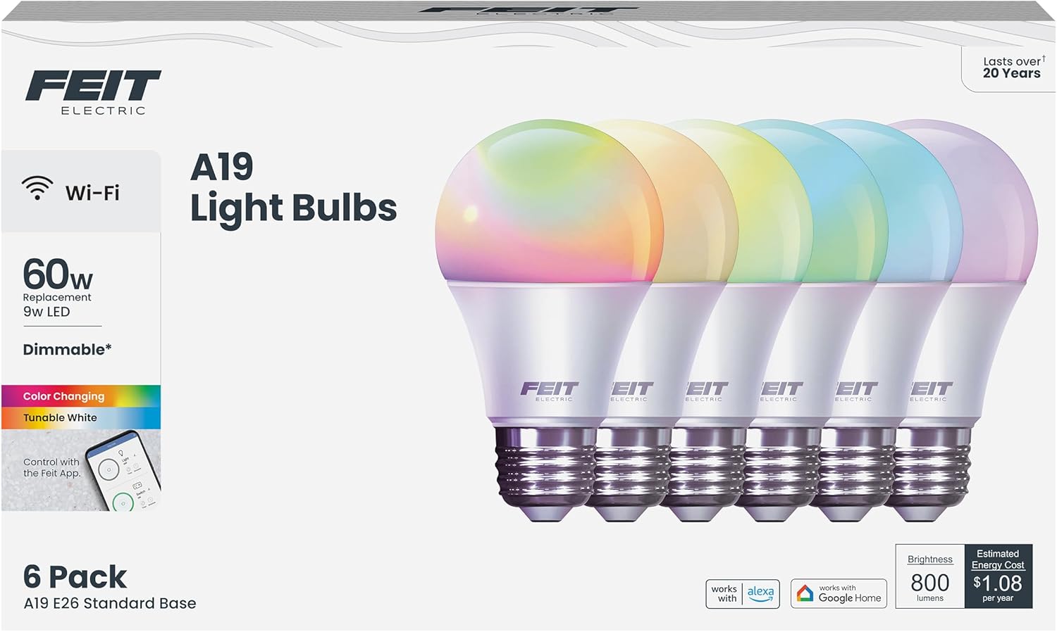 SEAMLESS SMART HOME INTEGRATION – Experience effortless compatibility with Amazon Alexa and Google Home, allowing voice-controlled lighting for ultimate convenience. Use simple voice commands to dim, brighten, or change the color of your Feit Electric A19 Smart LED Light Bulb without lifting a finger.