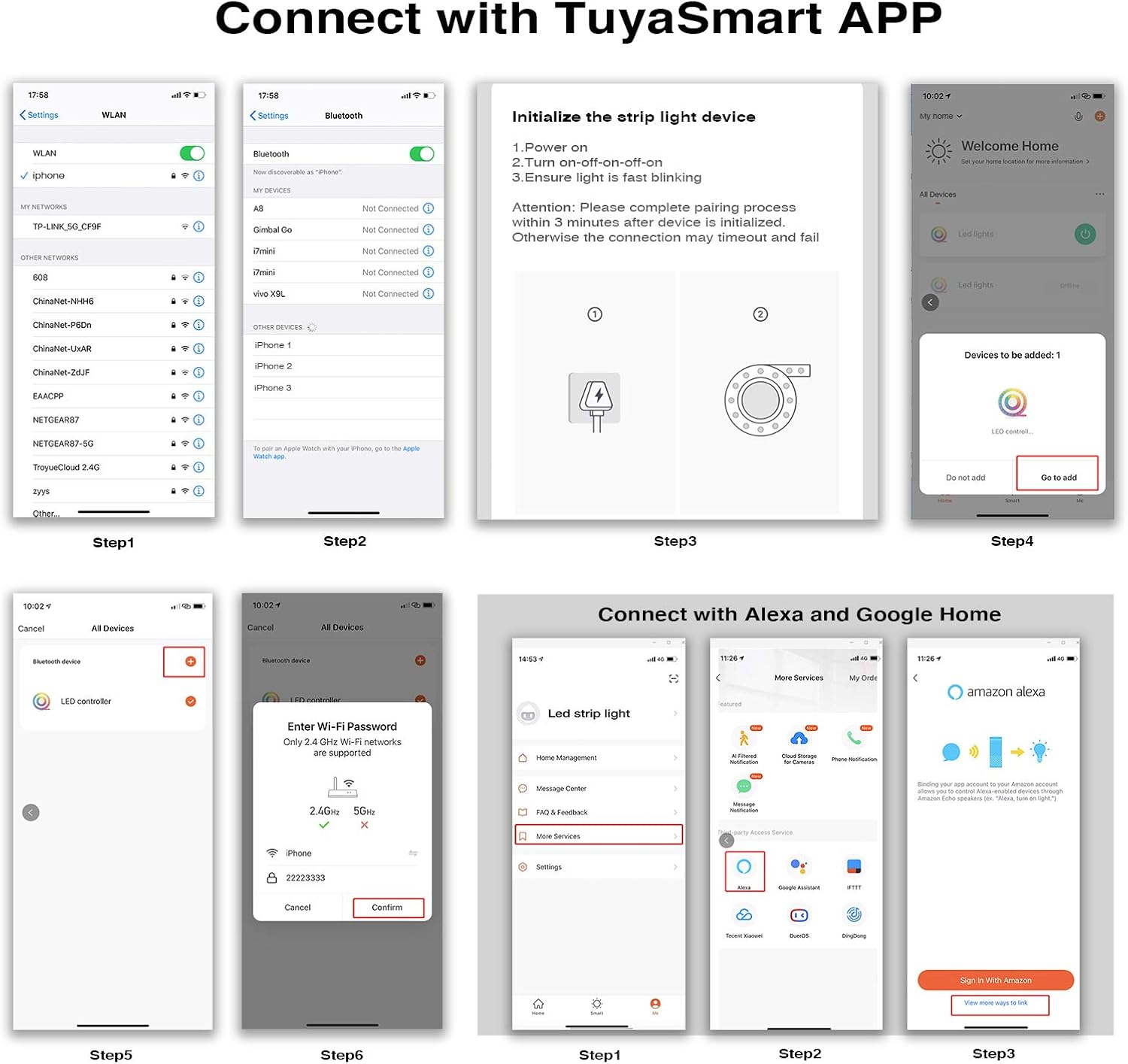 Easy to Install: We use strong adhesives, which can solve the problem of falling light strips; It can be cut every 3 led along the cutting marks, without damaging the rest of the strip. Note: Alexa not included.