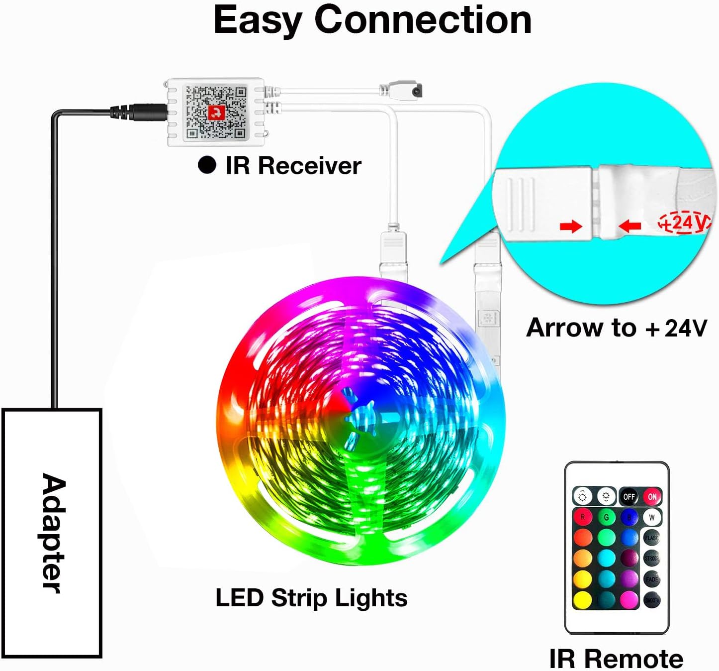 16 Million Colors: With 16 million colors, the RGB strip lights offer you vivid lighting ambience; Multiple scenes optional on application meet your various needs anywhere; Enjoy the fun to diy colors by scenes with led color changing lights