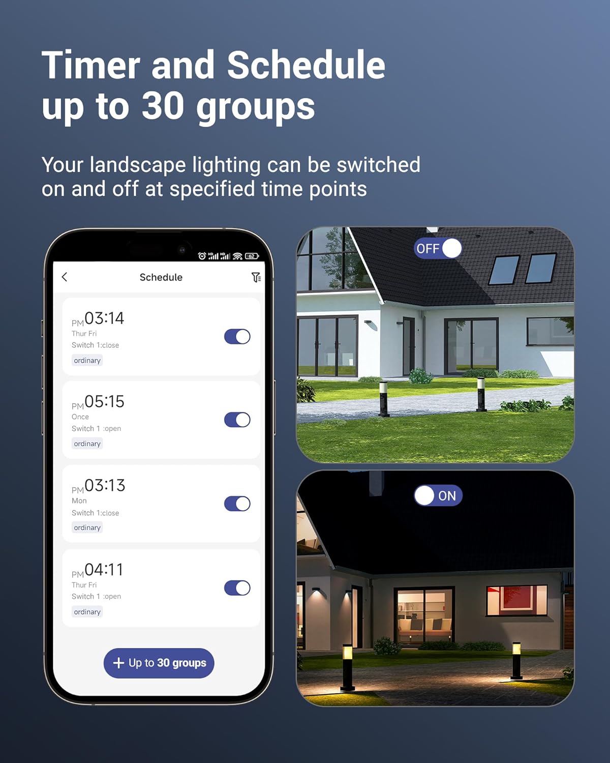 [Wide Application] Compatible with all 12V low voltage LED, halogen landscape lighting, like spotlight, pathway light, garden light, deck light, water feature etc.; connect outdoor low voltage transformers wifi via the DEWENWILS app then enjoy the joyful and convenient use