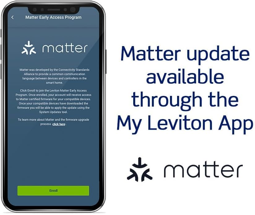 MATTER: Firmware update available via the My Leviton app to enable Matter connectivity