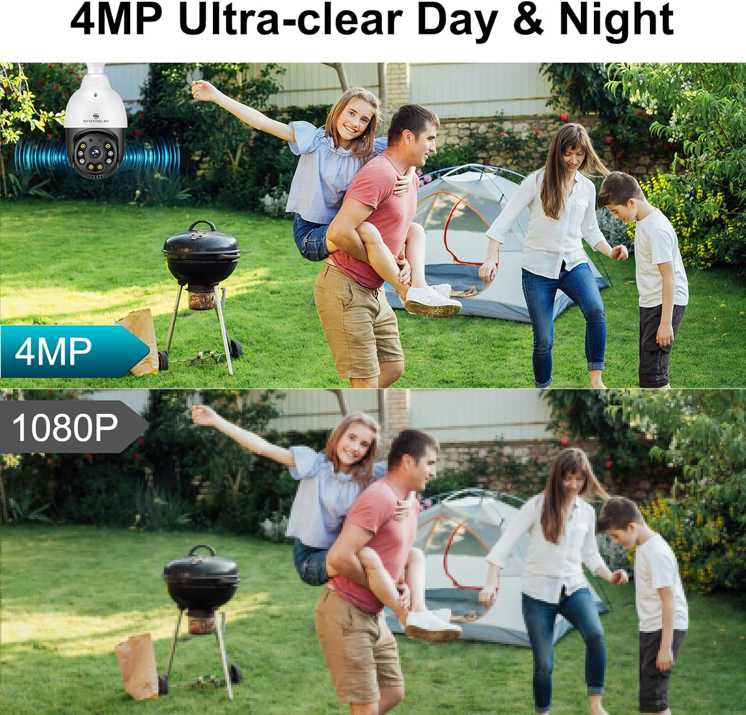 【4MP Color Night Vision & Multi-device Sharing】- 2.5K 4MP Full HD security camera provides crystal clear videos and recordings. Quality infrared LEDs & Sensor extend the range of night vision reach up to 66ft, lets you see everything clearly even in the dark. You can share your cameras with family, friends and other devices so that you can all access them simultaneously. Compatible with Alexa and Google Assistant to free up your hands