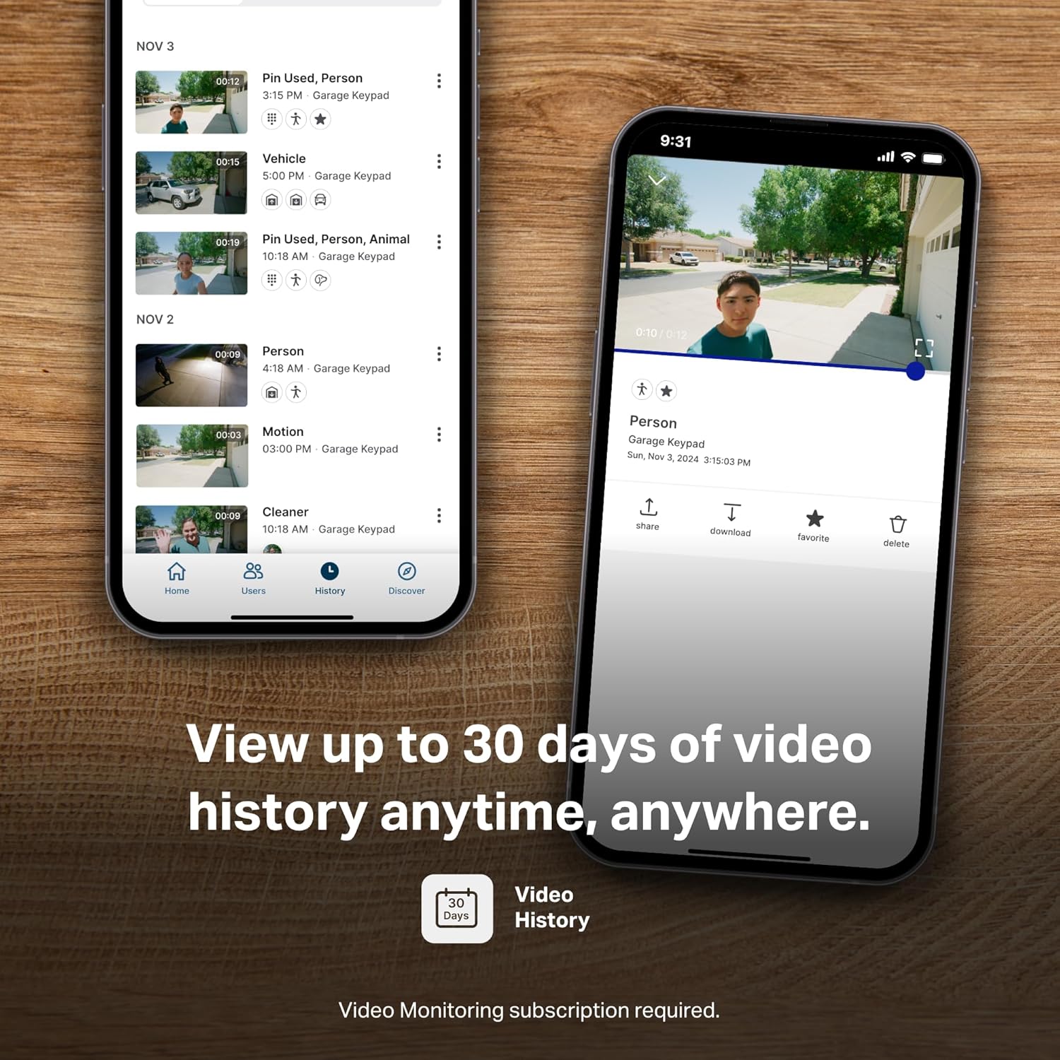 The myQ Smart GarageĀ® Video Keypad lets you see and control who opens your garage door. Grant access by assigning unique PIN codes for family, guests, or service providers. Get meaningful insights with real-time alerts that will tell you when someone has accessed your garage. Easy installation with integrated Bluetooth technology makes for quick Wi-Fi pairing. A must have for any smart home.
