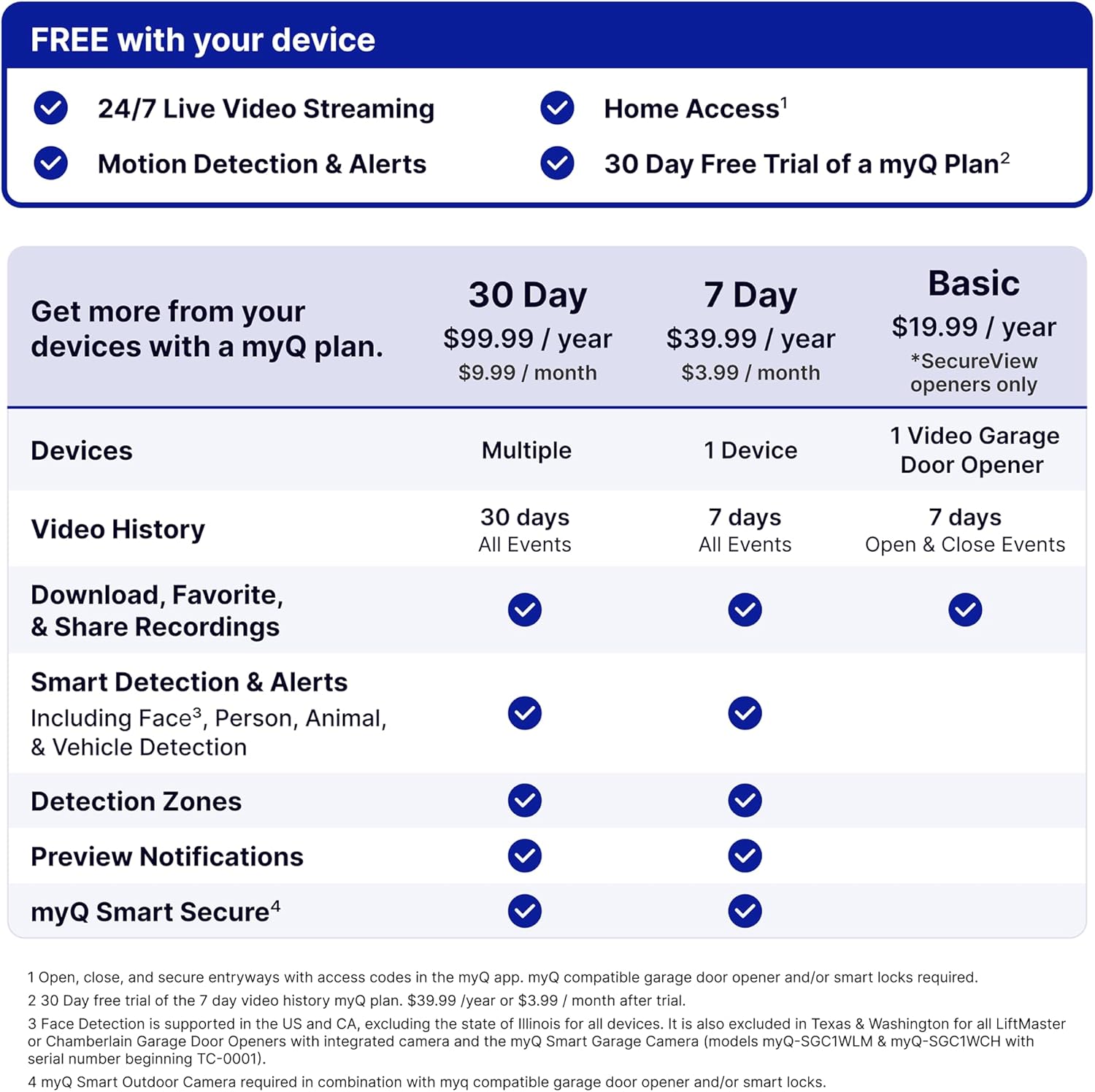 Remote Viewing: Access live feeds directly through the myQ app and take advantage of a free trial to view recorded events.