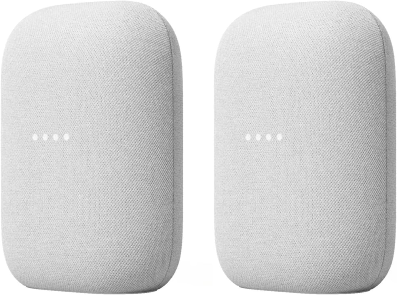 Meet the Google Audio 2-Pack, the ultimate smart speaker bundle for music lovers and smart home enthusiasts. Hear your music the way it should sound, with crisp vocals and powerful bass that fill the room. Just say, “Hey Google,” and Google Audio will play your favorite songs or answer your questions – Google Assistant is built right in for truly hands-free voice control. These speakers even adapt to your environment, automatically tuning themselves to whatever you’re listening to and adjusting volume based on background noise, so it always sounds just right. With a sleek, minimalist design, Google Audio is built to blend into any room and look as amazing as it sounds.