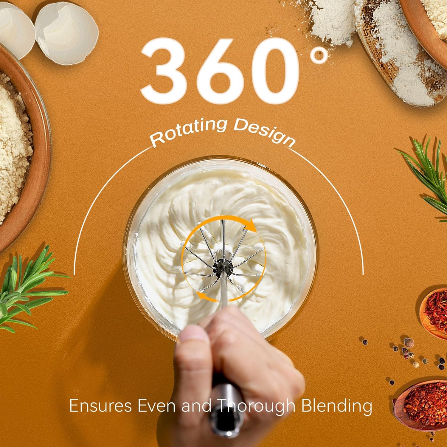 ✅【Easy to Use】Effortlessly operate the whisk with the hand-press mechanism. Say goodbye to tiring manual whisking and hello to effortless mixing.