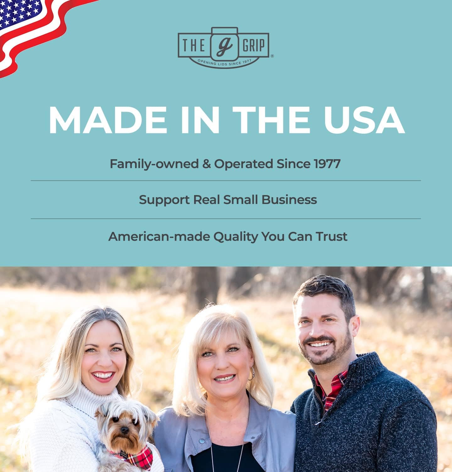 Support Small Business: Family-owned and operated, we’ve been Made in the USA since our grandfather invented the under cabinet grip jar opener in 1977. Our can opener has stood the test of time. It continues to be crafted by American workers, made with premium materials and the highest quality standards on the market.