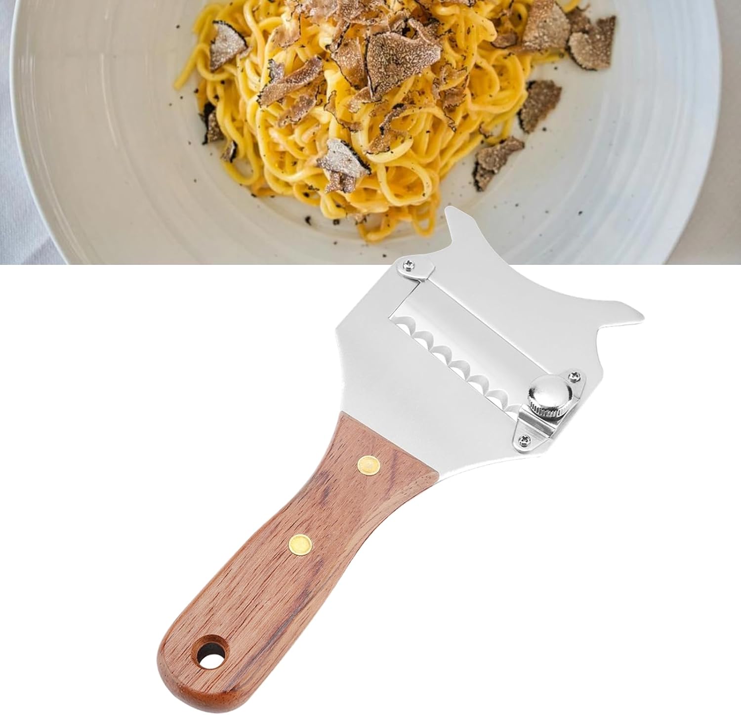 Truffle Shaver, Truffle Slicer, Chocolate Shavings, Kitchen Slicer Chocolate Shave with Stainless Steel Plate and Wooden Handle Adjustable Blade Suitable for Kitchen Gadget