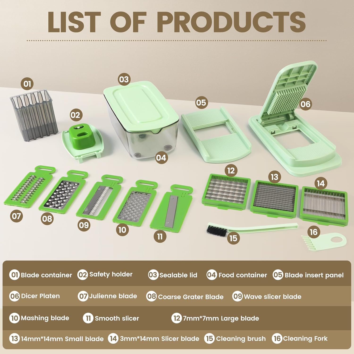 Vegetable Chopper with 8 Blades – Onion Chopper 16-in-1 with Container, Kitchen Vegetable Spiralizer Kitchen Gadgets – Home Essentials – Accessories