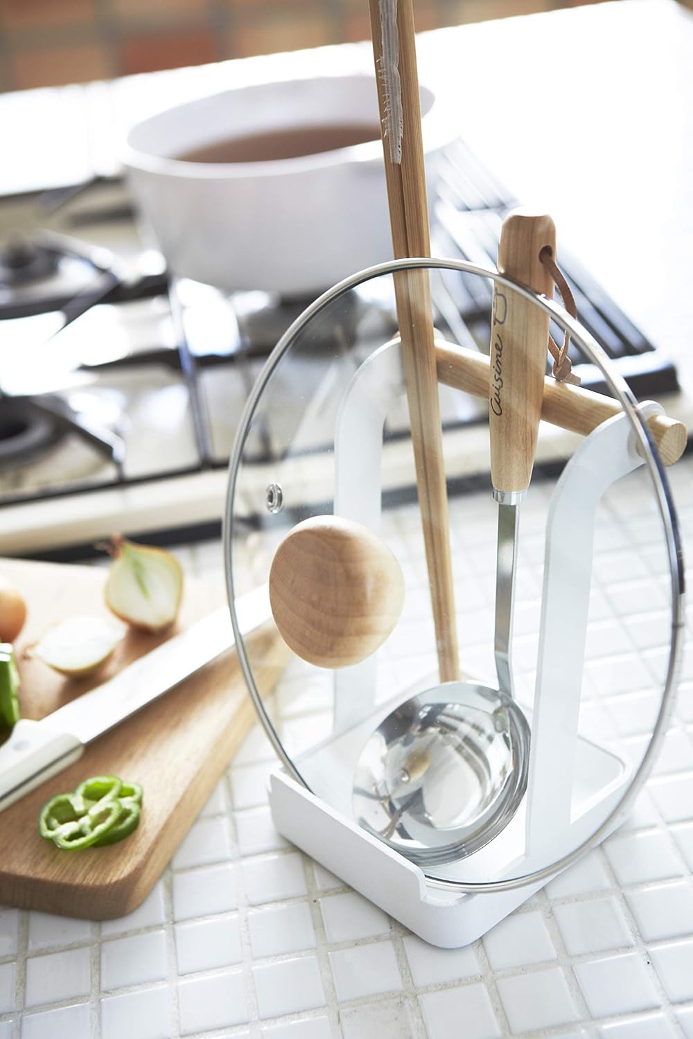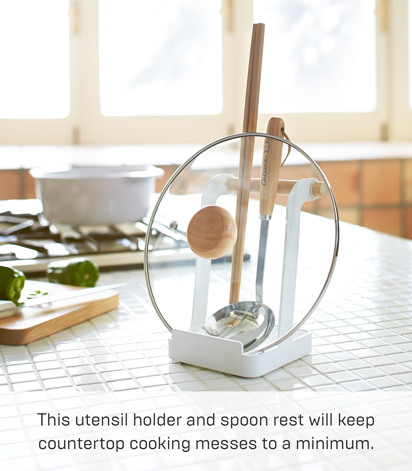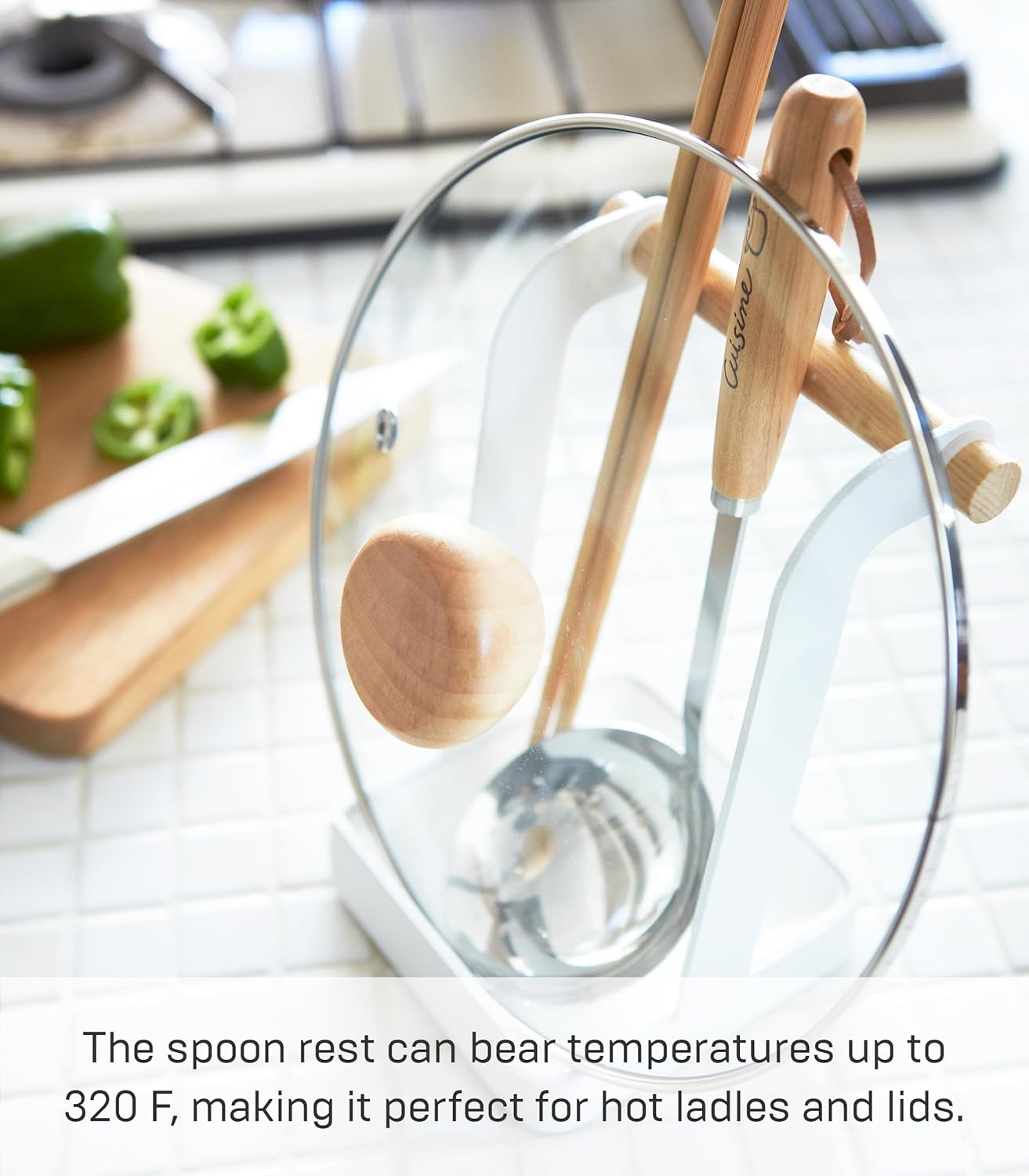 This Tosca Ladle & Lid Stand is designed by Yamazaki to keep countertop cooking messes to a minimum.